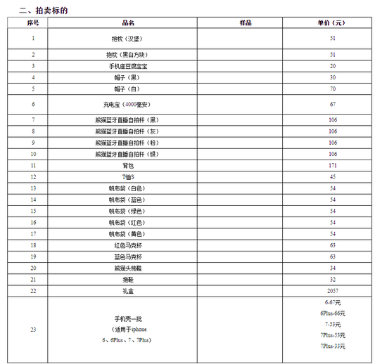 其中拍品包括帽子、拖鞋、帆布包、手机壳、充电宝等23种物品,熊猫互娱将多件物品组合成为“福袋”并各自命名,进行组合销售。