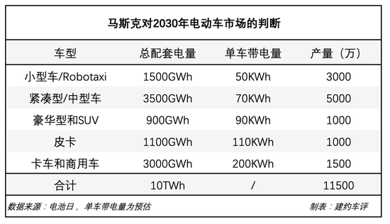 这张图上的数字,反应了马斯克对电动车终局的思考。