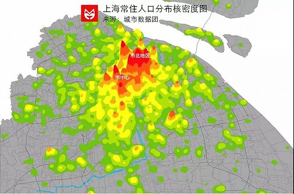 总体来说,上海的人口密度随着中心城区向外扩散呈现递减的趋势。