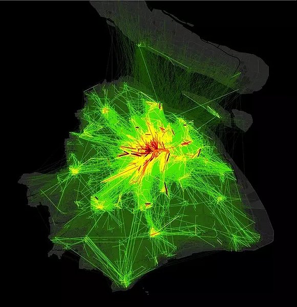 这张是我们通过手机信令画出城市早高峰OD图。