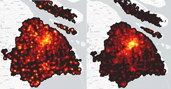 第二我们想知道上海这些人在空间上是怎么分布的。我们通过手机信令数据,把人口分配在地图上面。