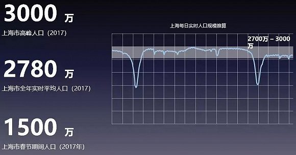 总体看来,其实在我们讨论上海到底有多少人的时候,它不是一个静态的问题。经过我们的测算,我们知道上海最高峰大概3000万人,上海年平均的人口是2780万,上海人口最低值的是1500万。