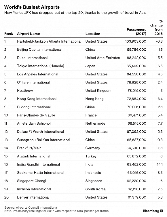 数据显示,全球前50大最繁忙的机场中,中国占有8席,除了首都机场和上海虹桥机场之外,其余6座机场的客运量增长幅度都在6%以上。此外,中国的一线城市也正在经历一轮机场新建和扩建潮,比如位于北京大兴的新机场计划在明年9月30日投入使用,年旅客吞吐量可以达到8000万以上,上海浦东机场的卫星厅也计划在明年开放使用,每年能够处理的旅客数量也达到3800万人次。
