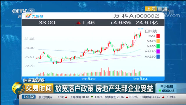 从房地产板块来说,目前的估值很低,目前整个行业市盈率不到12倍,房地产板块股息率为3%,A股超千亿的房地产企业有五家,新城控股2018年的业绩增长超过70%,其他四家企业的净利润同比增长都超过20%,就是说利润增长好、股息率高、市盈率比较低。还有两家在香港上市的中国恒大和碧桂园,中国恒大去年的净利润超过50%,碧桂园超过30%,并且只有几倍的市盈率,这些房地产的优势企业会直接受益于这次的落户新政。