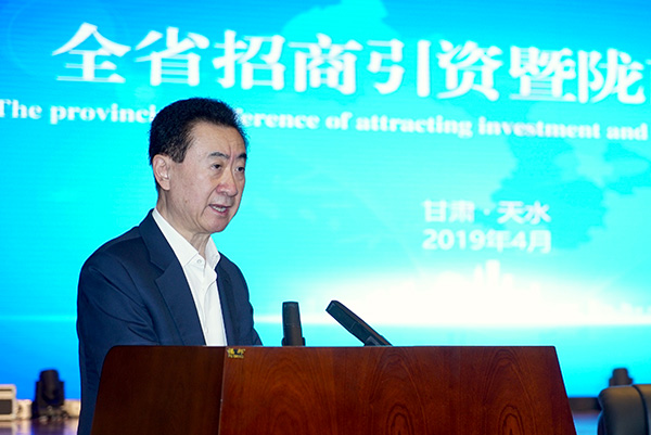 非常高兴出席今天的会议。作为在甘肃投资最多的企业之一,我代表万达集团对甘肃省招商引资暨陇商大会的举行表示热烈祝贺!预祝本次大会圆满成功!