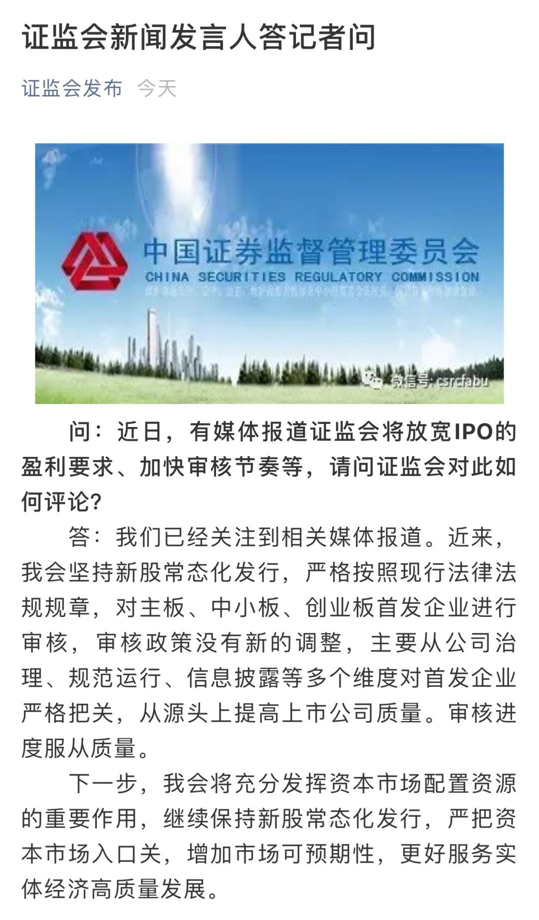 刚刚,证监会紧急回应IPO放宽传言。