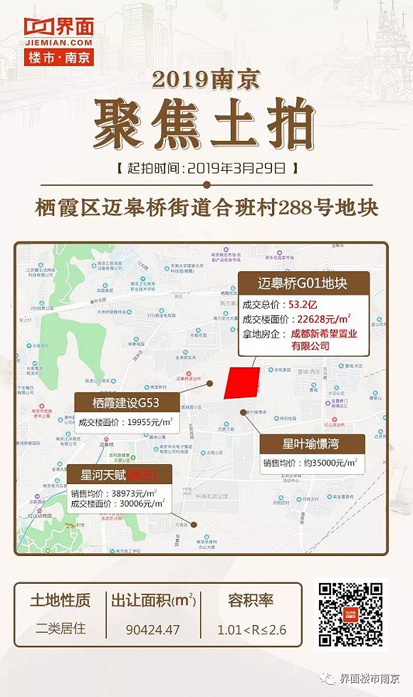 3月29日南京迎来春节后首次土拍,此次共拍出的7幅地,其中2幅涉宅用地迈皋桥G01地块和西善桥G02地块,分别经过120轮竞拍和58轮竞拍,被新希望和世茂拿下。此次土拍给土地市场注入了很大的信心,也让人们看到了土地市场回温的希望。
