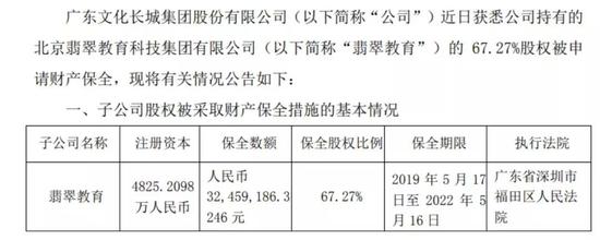 审计单位在上市公司年报出去无法表示意见的说明,意味着上市公司年报中存在的风险,连会计事务所都不愿意跟着一起扛,只能通过“非标”来暗示问题所在。果然几个月后,翡翠教育原股东因为6.3亿元收购款的延期支付起诉文化长城,近期文化长城公告,上市公司持有的翡翠教育股权已经被深圳福田区人民法院司法冻结。