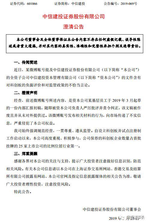 中信建投:对科创板负面评价是员工起草汇报稿 被作废