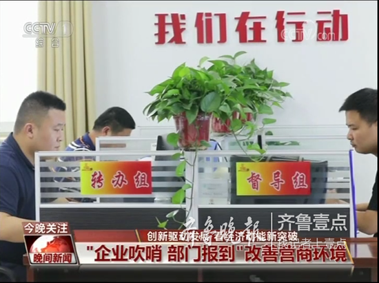 7月30日,央视新闻综合频道晚间新闻栏目报道了菏泽“企业吹哨、部门报到”改善营商环境的工作机制。