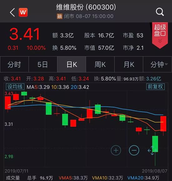 或受这一公告的影响,8月7日,维维股份股价开盘大涨,最终以3.41元的涨停价收盘。
