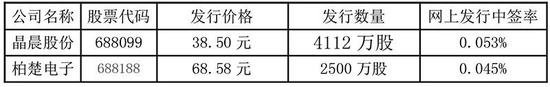 |  孙越 丁晋灵    鉴于首批25只科创板股票开市两周半以来的不俗表现,这次新上的两只新股预计将使打新中签者获得可观收益。   特别是代码688188的柏楚电子,发行价68.58元/股,8月8日上市,这8多得都有点数不过来了……有人认真算过,如果柏楚电子上市后涨幅能达到300%,则中签一单的盈利将超过10万元。   两只新股的基本信息   首日最高价何时出现?   如果采取首日卖出策略,那最佳卖点在什么时点呢?   先看看“老剧本”,根据申万宏源(4.560, -0.04, -0.87%)证券的统计,科创板首批25只新股上市首日股价相对发行价涨幅均值的最高点,是在上午11时前后出现,平均最高涨幅为187.5%,之后呈递减态势。   但是,由于活跃资金的追捧,首批25只新股绝大部分后续表现不俗。加上8月8日仅有两只新股上市,标的相对较少。因而,在资金博弈之下,首日最高点出现于何时还真不好说。有市场人士认为,不排除两只新股上市首日的高点就出现在开盘后一小时之内。   至于中签的预期收益,从首批25只新股的表现看,一般来说,发行价较高的股票,收益也相对较高。   如发行价在40元以上的乐鑫科技(165.660, 10.03, 6.44%)等4只股票,每中一签的首日最高收益(假设以首日最高价卖出)少则4、5万元,多则近9万元。   以此观之,作为迄今发行价最高的科创板股票,柏楚电子的中签收益可能也是比较高的。   但还有一个指标也很重要,即流通股本。此前25只股票的首日最高收益来自安集科技(183.000, -2.80, -1.51%)。虽然发行价39.19元,不到40元,但安集科技流通股本仅1157万股,其上市首日即大获追捧,当天的中签最高收益超过10万元。   首日之后股价还有新高?   从首批25只股票的表现看,目前有20只科创板股票在首日打出高点后,此后又陆续创出新高,以致不少中签者高呼“卖早了”。   那么,这次的两只新股也将连创新高么?   市场人士认为,还要看首日涨幅充分不充分。科创板首批股票上市第一天收盘价较发行价的平均涨幅达139.55%,其实并不“夸张”。如果两只新股首日涨幅已颇为可观,则后续再创新高的难度也会加大。   比如首日收盘涨幅超过400%、最高涨幅超过520%的安集科技,在此后两周多的交易中,就再未触及过首日高点。   各行业开板溢价幅度可参照   根据A股其他板块的“剧本”,分属不同行业的新股,其开板溢价幅度也不一样。   申万宏源的最新研报显示,今年7月,A股其他板块中,电信、资本市场服务业的新股开板溢价较高,均超过300%;零售业、计算机和电子设备行业开板溢价超过200%,化学化工行业仅约150%。