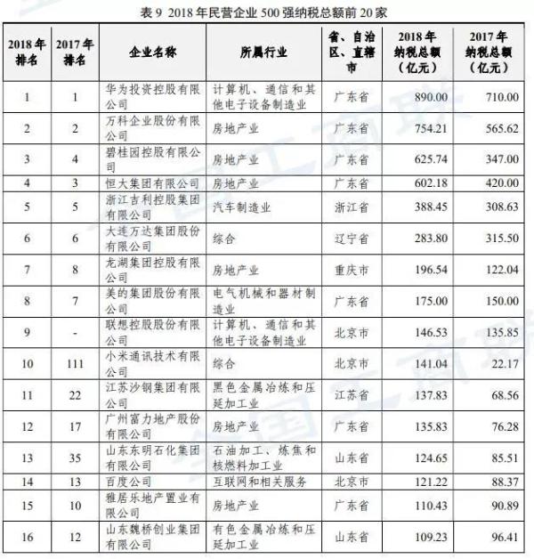 民企500强的前十强中,广东企业占据了4个席位,分别是第1的华为、第4的正威、第5的恒大,和第7的碧桂园。