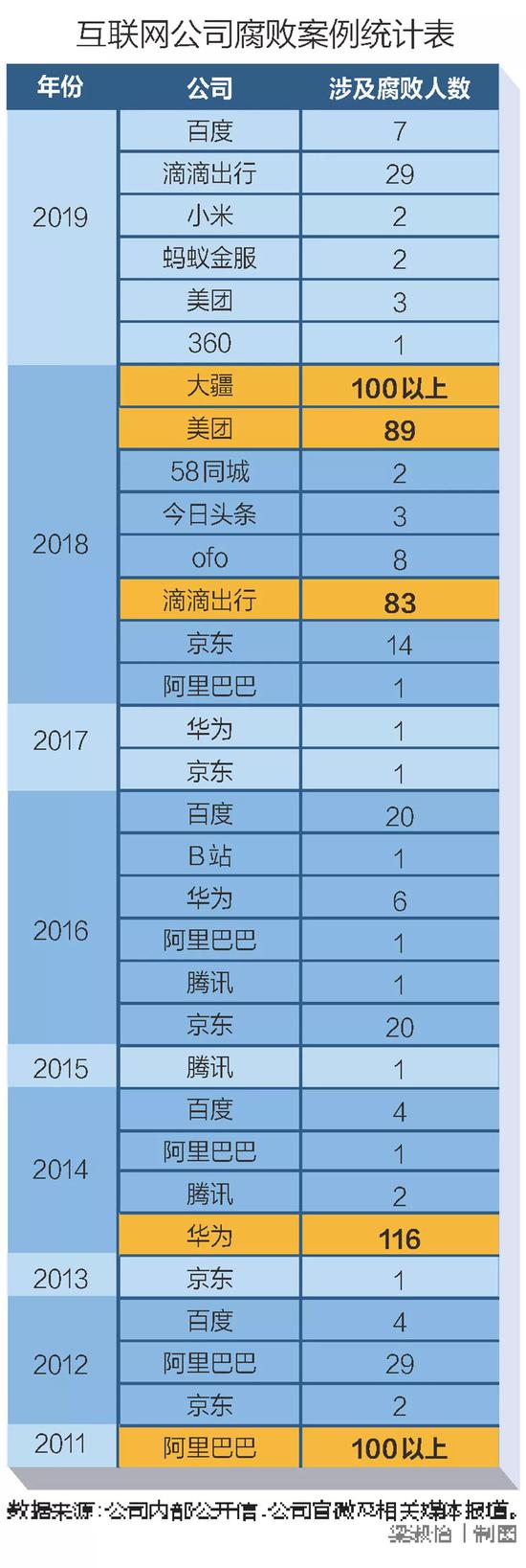 八年来,几乎所有互联网巨头都发生过内部腐败,涉案人数总计超过650人。