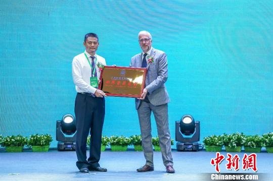 图为国际花园中心协会(IGCA)授予横县“世界茉莉花都”牌匾 陈冠言 摄