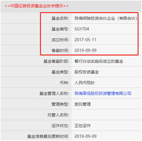 直到今天,基金君发现,基金业协会最新更新的私募基金备案信息显示,珠海明骏投资合伙企业(有限合伙)已经在今年9月9日,也就是昨天完成了私募基金的备案。该基金成立于2017年5月11日,基金类型为股权投资基金,管理人为珠海高瓴股权投资管理有限公司。这也强力回应了市场质疑。