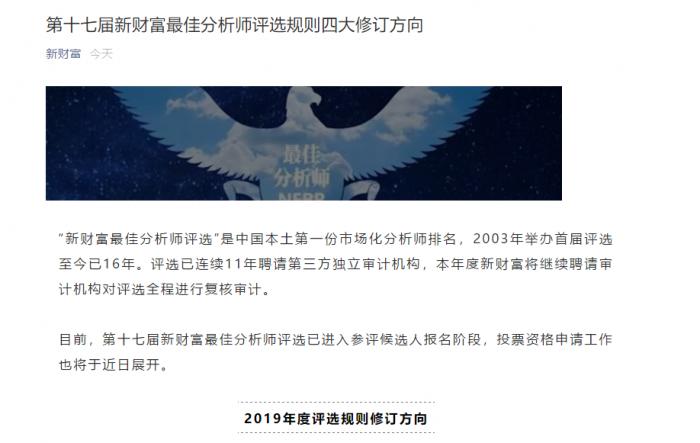 新财富官方从四方面分析了今年新财富最佳分析师评选的规则变化。