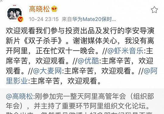 今年二月,高晓松在微博如此声明。猝不及防的是,据天眼查数据显示,10月21日,高晓松正式卸任北京阿里巴巴音乐科技有限公司董事长、法定代表人,由阿里巴巴创新业务事业群总裁朱顺炎接任。随后,阿里对以上职位变动回应称,属于正常的公司高管任职调整。目前高晓松仍持有北京阿里音乐的股权,只是变成了该公司的自然人股东和董事。