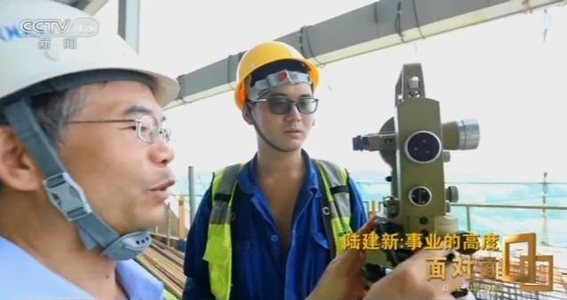 当时,陆建新在300米高空测量时,有一个考察团到工地参观。隔着二十多米远,陆建新看到,一位女专家脸上流着泪向他招手。