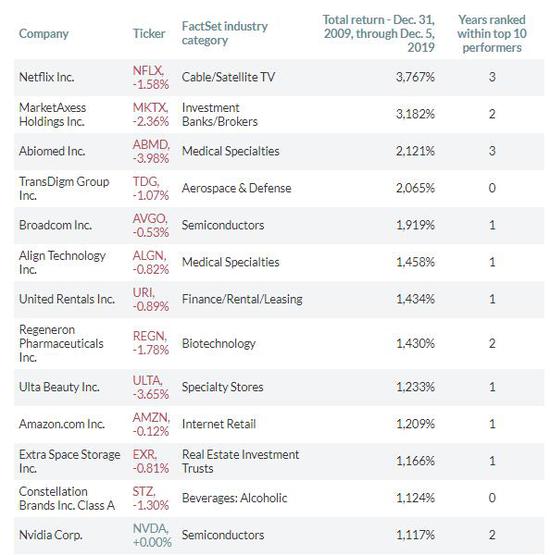 以下是2009年底至12月5日期间美国股票表现最好的公司名单: