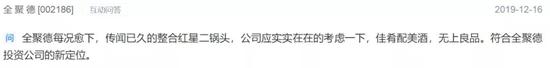 但这仍然挡不住投资者那颗“恨铁不成钢”的心,满世界为全聚德物色收购对象。比如,还有投资者建议全聚德考虑整合红星二锅头,理由是“佳肴配美酒,无上良品,符合全聚德投资公司的新定位。”