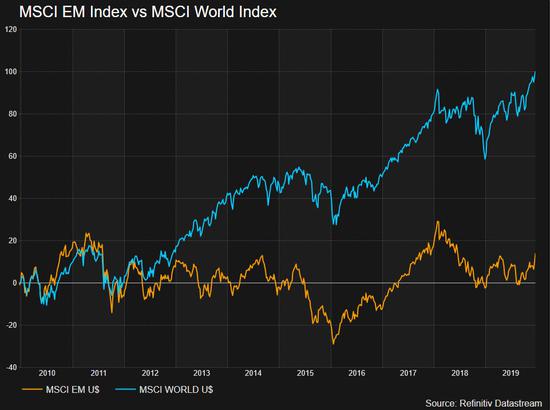 自2010年初以来,摩根士丹利(50.69, -0.03, -0.06%)资本国际(MSCI)新兴市场股票指数仅上涨了15%,而同期摩根士丹利资本国际全球指数的收益则高达104%。