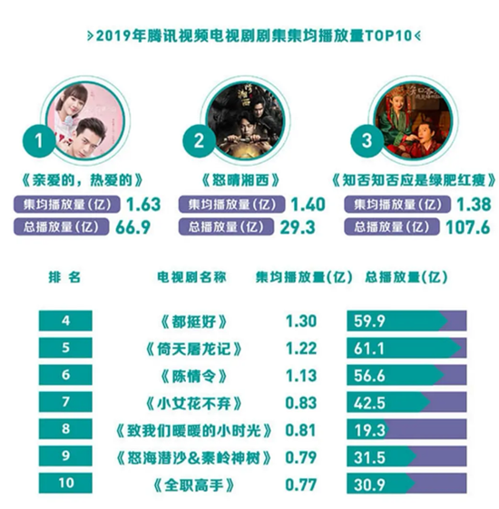 2019年,行业进入冷静期,用户越发注重内容质量,报告显示,“品质上行,数量下行”成为电视剧市场的新常态。腾讯视频共上线国产剧149部,较2018年减少10部,不过电视剧频道单日播放量创下纪录,峰值突破15亿。
