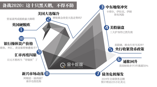 展望2020年,许多正在发酵中的,或者隐藏在市场深处的风险事件,皆有可能进一步恶化,成为引发市场崩盘的“黑天鹅”。其中,以下十大风险事件的“黑化”可能性,是最高的。