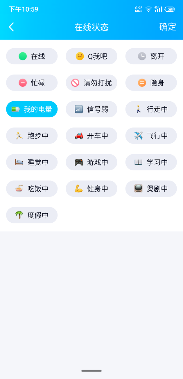 此外,腾讯表示,除了显示手机电量,还可将在线状态改为学习中、游戏中、健身中等等。