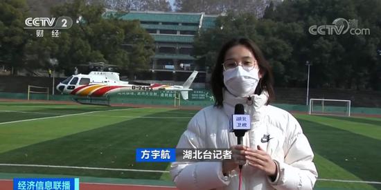 湖北台记者 方宇航:现在是中午的1时05分,经过35分钟的飞行,这架从仙桃起飞的民用直升机降落在了武汉大学的桂圆操场。
