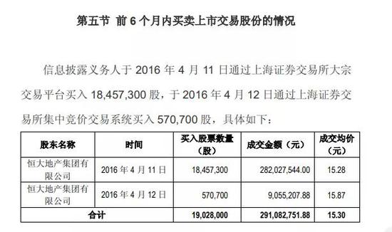 此外,ST坊展(5.110, -0.03, -0.58%)(600149)2016年4月的公告也曾显示此营业部曾为恒大买入席位。ST坊展公告显示,恒大于4月11日以15.28元/股的均价买入ST坊展1845.73万股,耗资2.82亿元。这一数据与当日ST坊展大宗交易披露数据完全吻合。而当时的买方正是国泰君安广州黄埔大道证券营业部。