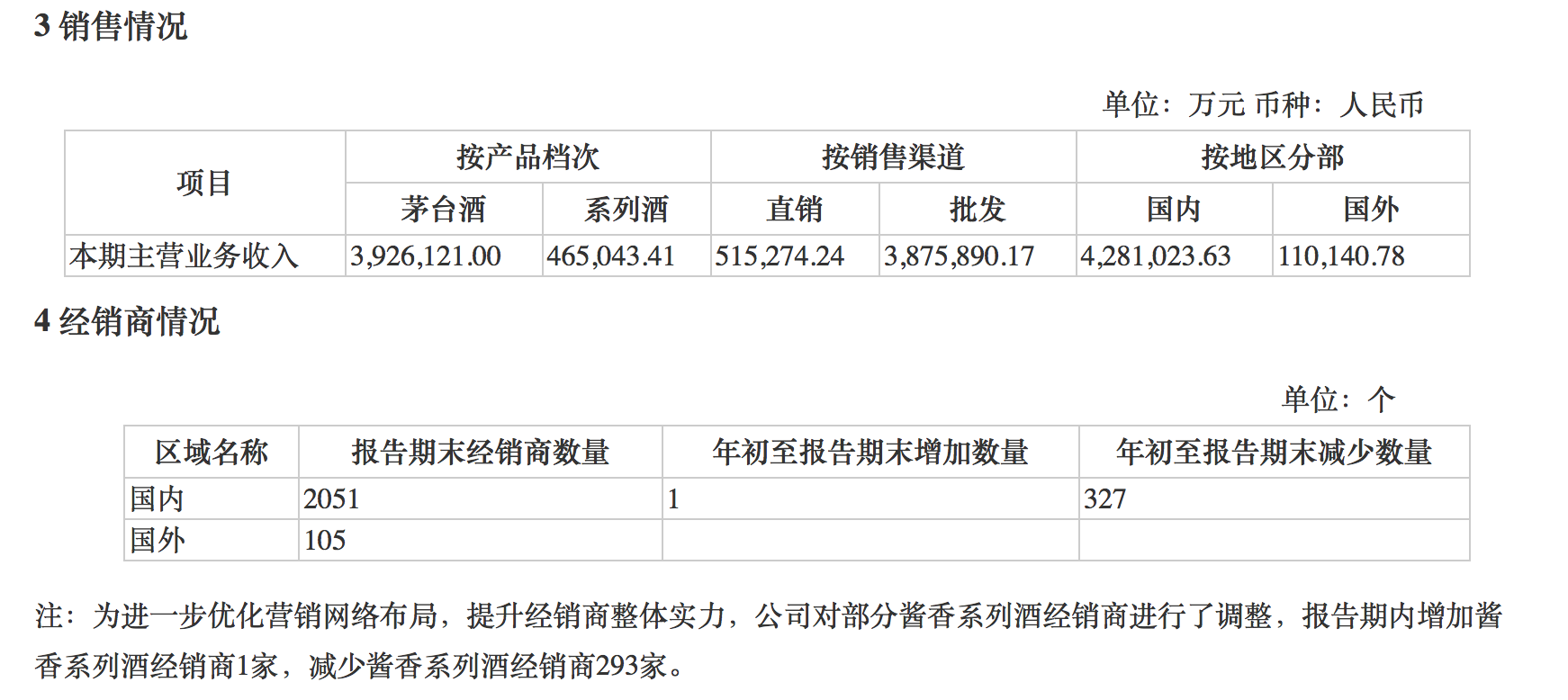 从公布的销售情况来看,今年上半年茅台酒的销售收入达到392.61亿元,系列酒的销售收入为46.5亿元。其中,直销渠道约占总业务收入的12%,达到51.52亿元,批发渠道(经销商渠道)的收入为387.59亿元。对比第一季度的直销占比,贵州茅台在今年第二季度的直销比例再有提升。