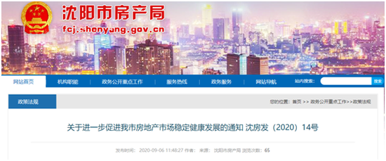 9月6日,沈阳市房产局等9部门联合印发《关于进一步促进我市房地产市场稳定健康发展的通知》(以下简称《通知》),进一步加强土地市场调控、加快推进项目建设、完善商品房销售管理,严格差别化信贷税收政策。